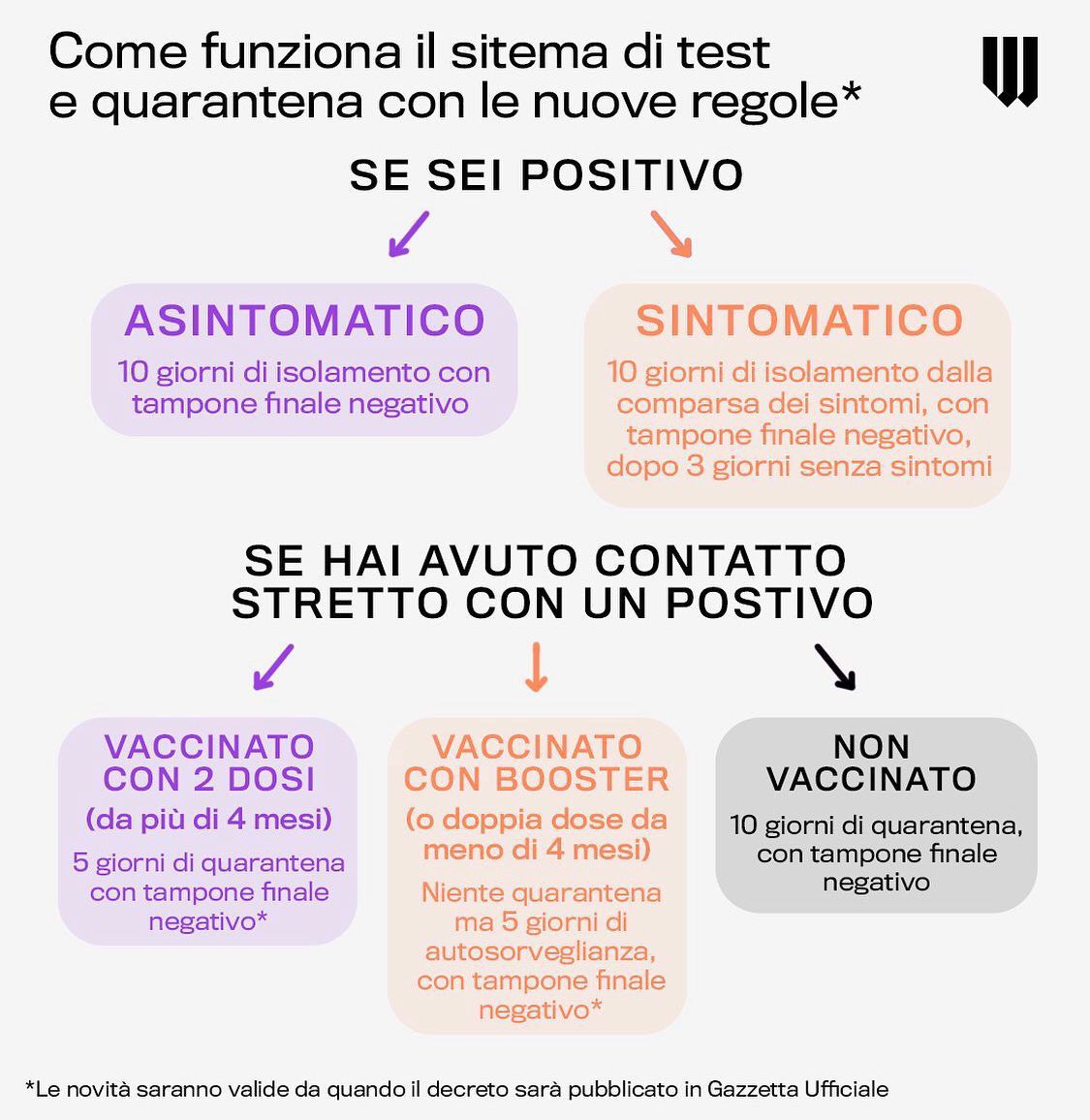 con il completamento del ciclo vaccinale e la guarigione) e le quarantene per i vaccinati.