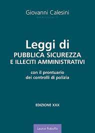 - LEGGI DI PUBBLICA SICUREZZA E ILLECITI AMMINISTRATIVI – di GIovanni CALESINI sconto del 30% al prezzo di 45 euro omnicomprensivo di spedizione, anziche 62 euro di listino.