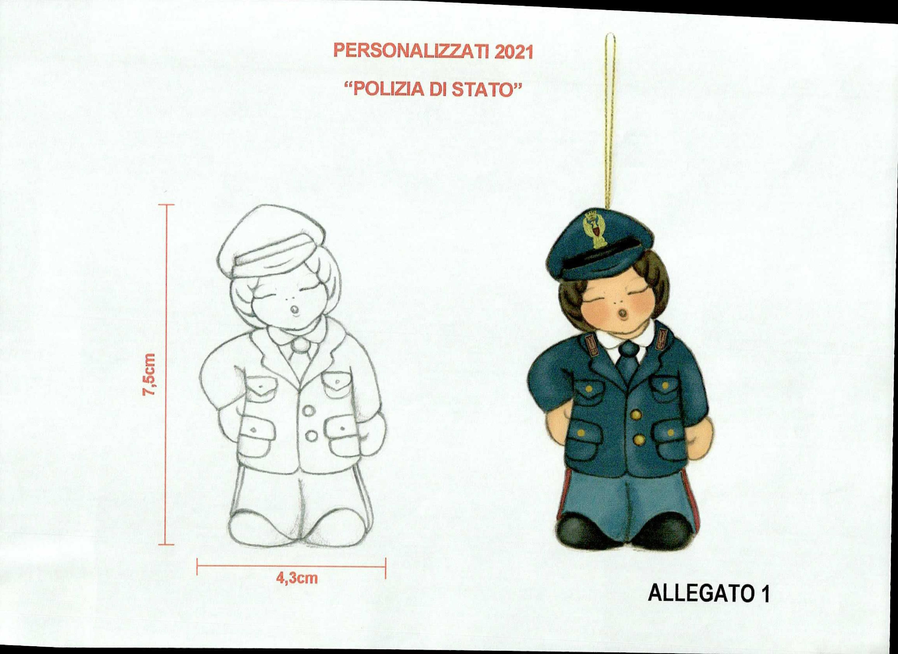 “Addobbo Poliziotto” costituito dalla classica statuetta raffigurante l’Angelo TIILTN abbigliato con la divisa ordinaria della Polizia di Stato, oppure “Piatto decorativo Polizia 2021” raffigurante il medesimo Angelo e recante la scritta in stampatello “Polizia di Stato”. Il prezzo agevolato di vendita è di €14,95 per l’Addobbo e € 12,65 per il piatto decorativo.