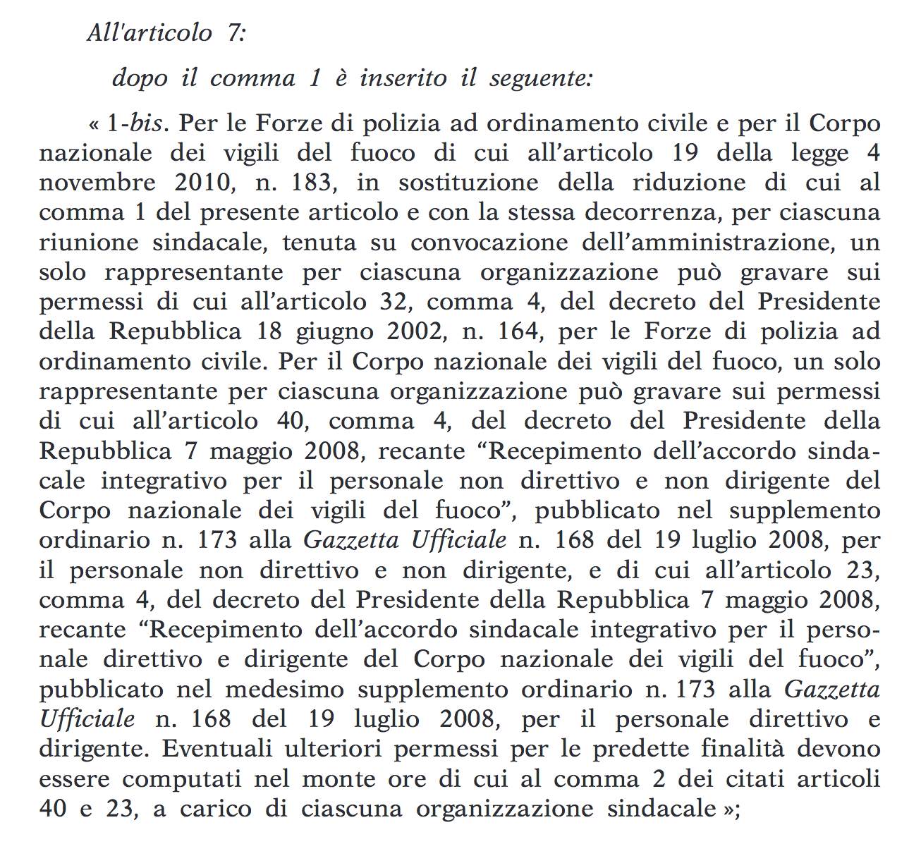 Infatti i Sindacati di Polizia ( e Vigili del Fuoco) sono ESCLUSI dalla riduzione dei permessi!!!